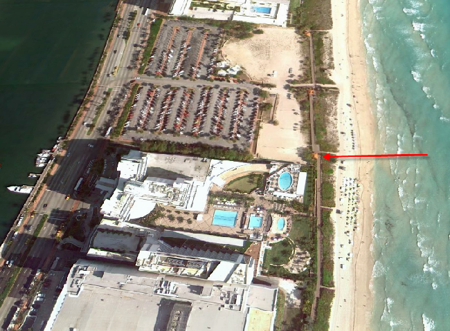 Then we cut to the beach boardwalk near the Eden Roc where Michael talks to Sam Via cell phone. Michael is again northbound on SW 137th Ave. Madeline plays the clutch role and sets up the meeting.