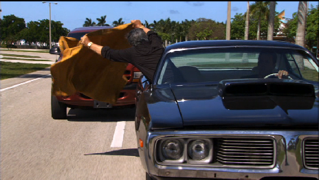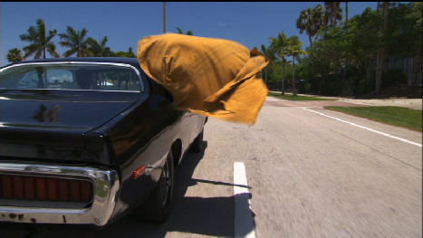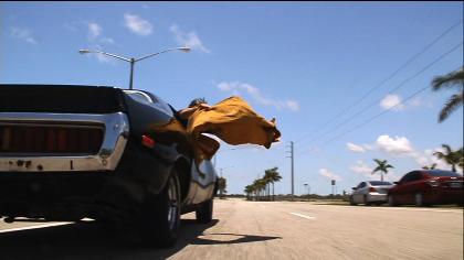 Then, sadly the scene gets even more far fetched. Michael exits his vehicle right in front of the driver of the truck that he just cut off. He walks to the rear of the truck, rummages through the bed, steals a flare gun and then disconnects the boat from the trailer. The whole time the operator of the truck has apparently been abducted by a UFO and does not pay Michael any attention. Imagination can not stretch far enough to make this scene even remotely believable.